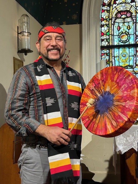 Dr. Ric Statler leads the drumming at All Souls. He is proud of his Indian bloodline and feels he has a responsibility to share his indigenous peoples’ perspectives and traditions. His grandparents on his father’s side moved to the United States from Columbia. His grandmother was a Chicha (Andes Mountains) and his grandfather was from the Inca tribe. Native Americans share many values and beliefs with Christians, Jews, Muslims, and other faiths. Chief Standing Bear (1829–1908) famously said, “There is one God, and He made both Indians and white men. We were all made out of the dust of the earth.” Chief Joseph (1840 –1904) reflected “I believe much trouble and blood would be saved if we opened our hearts more.”